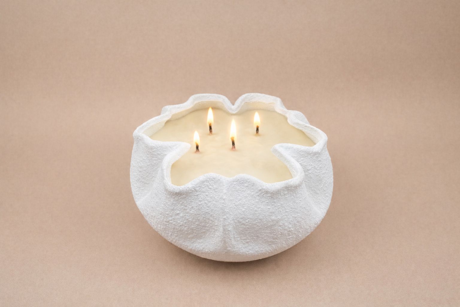 נר פיסולי בעיצוב אורגני המדמה פרח פתוח,